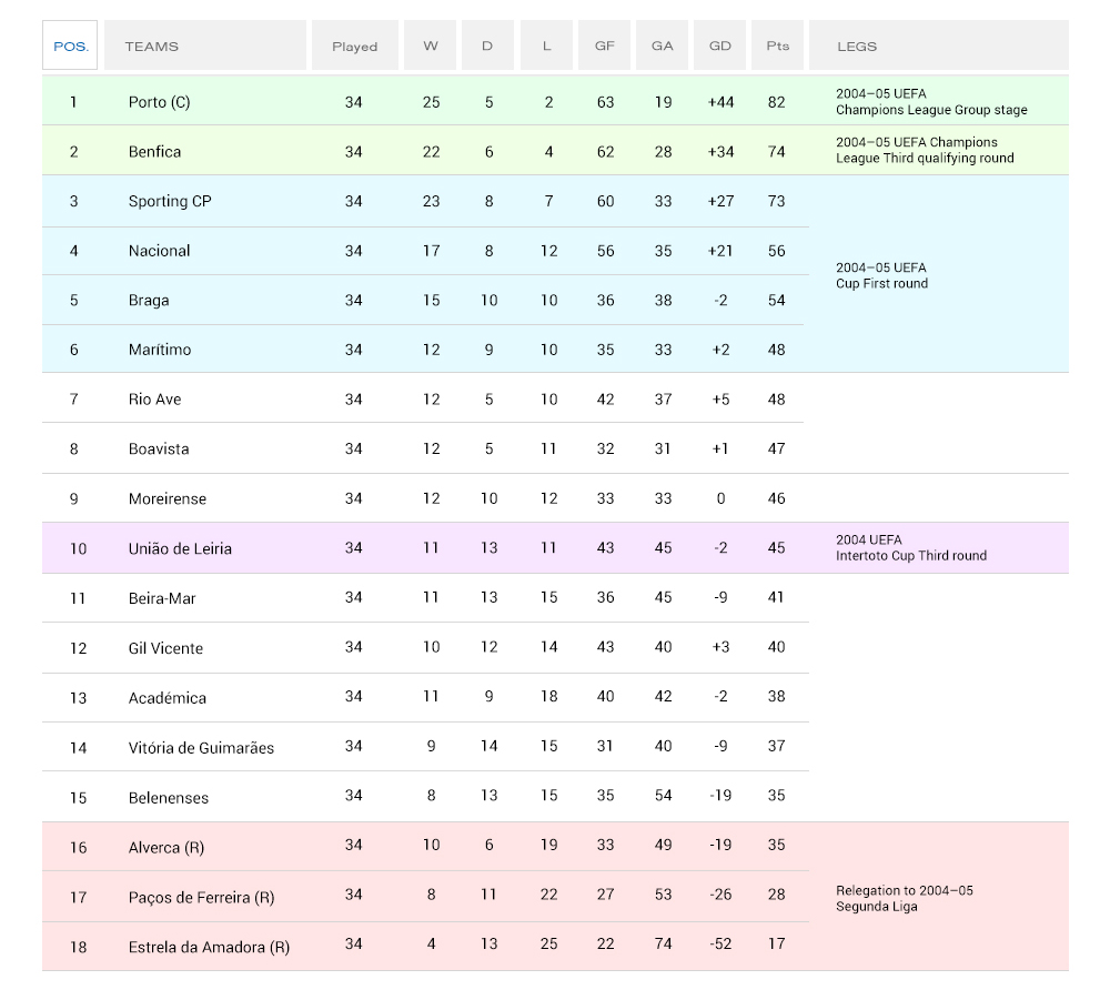 The 2003–04 Primeira Liga was the 70th edition of top flight of Portuguese football. It started 16 August 2003 with an opening game between Académica de Coimbra and Sporting Clube de Portugal, and ended on 9 May 2004.